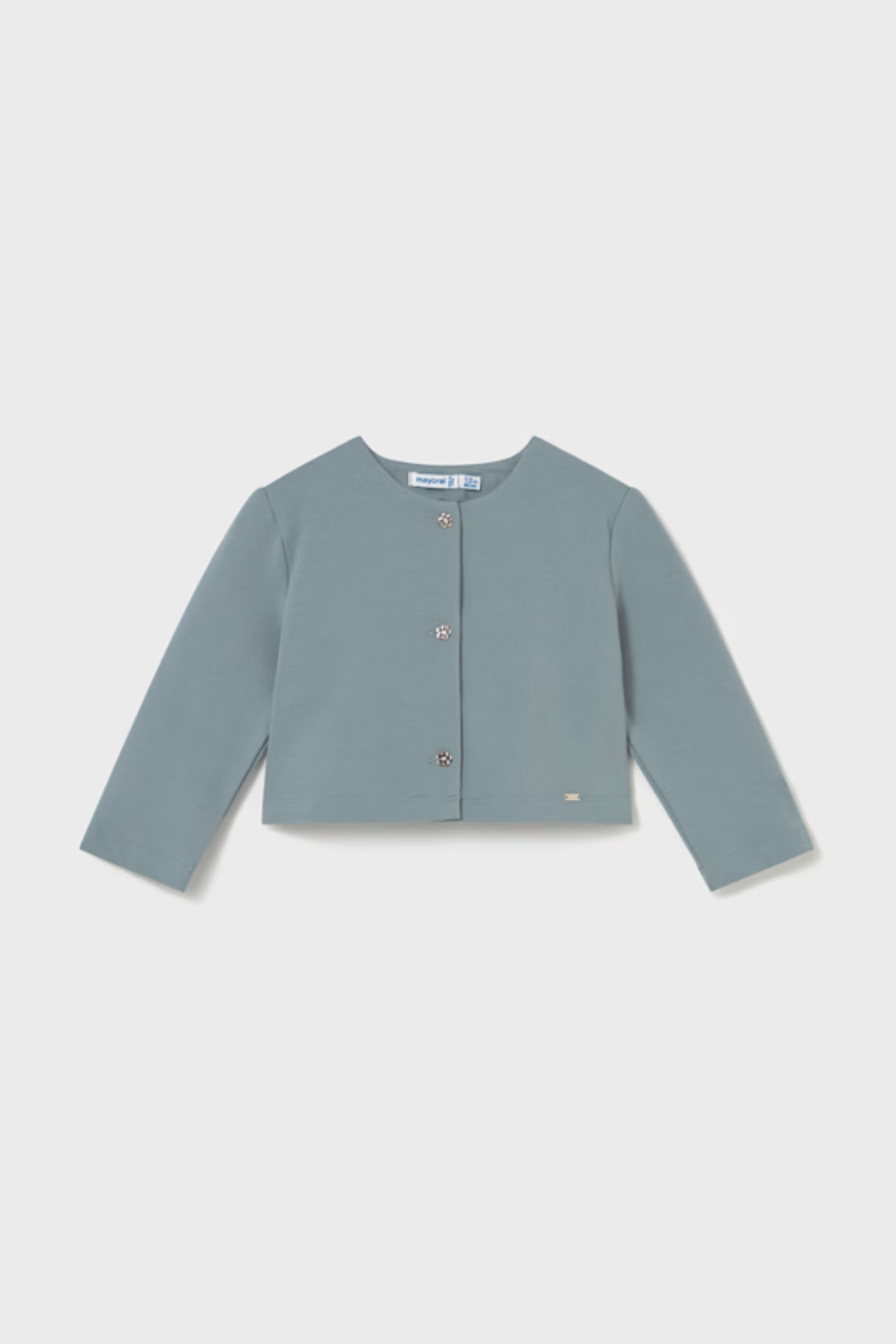 Bebekler için uzun kollu hırka. Yuvarlak yaka. Önden düğmeli.
