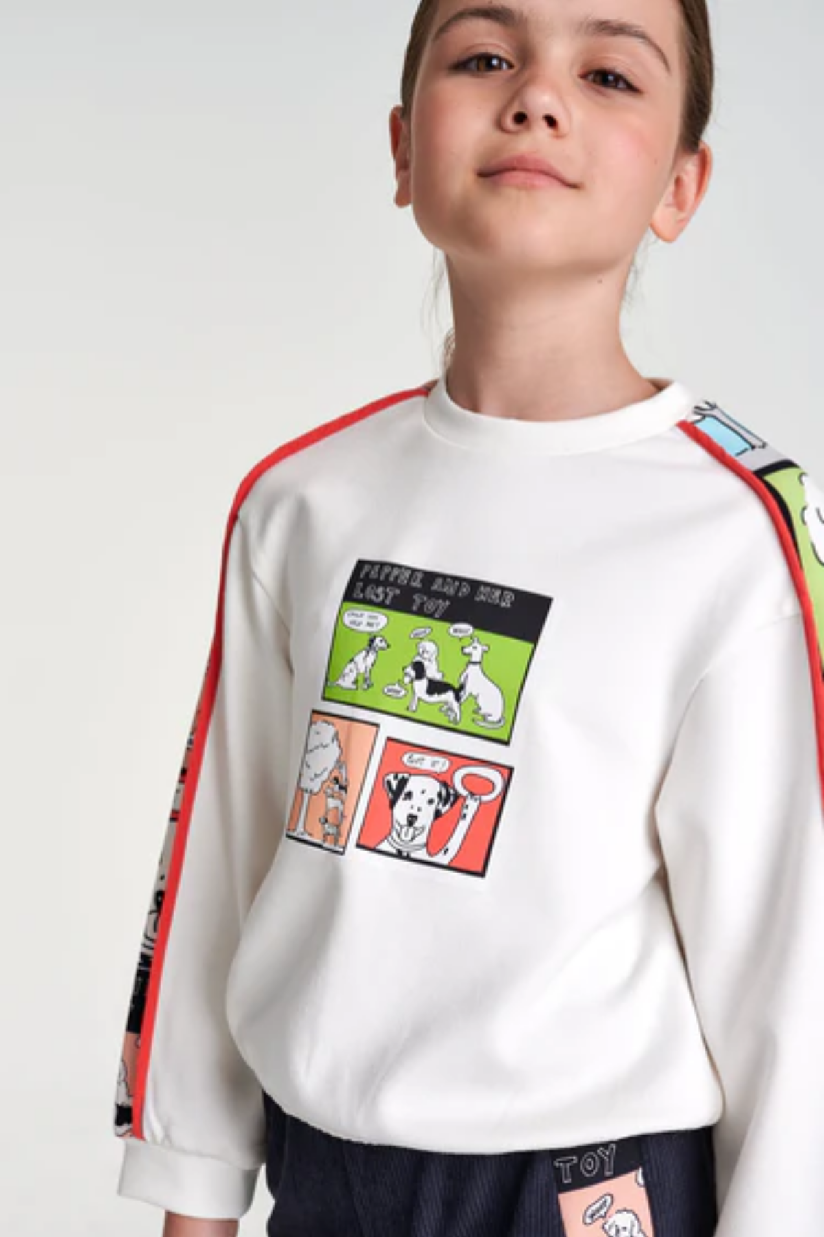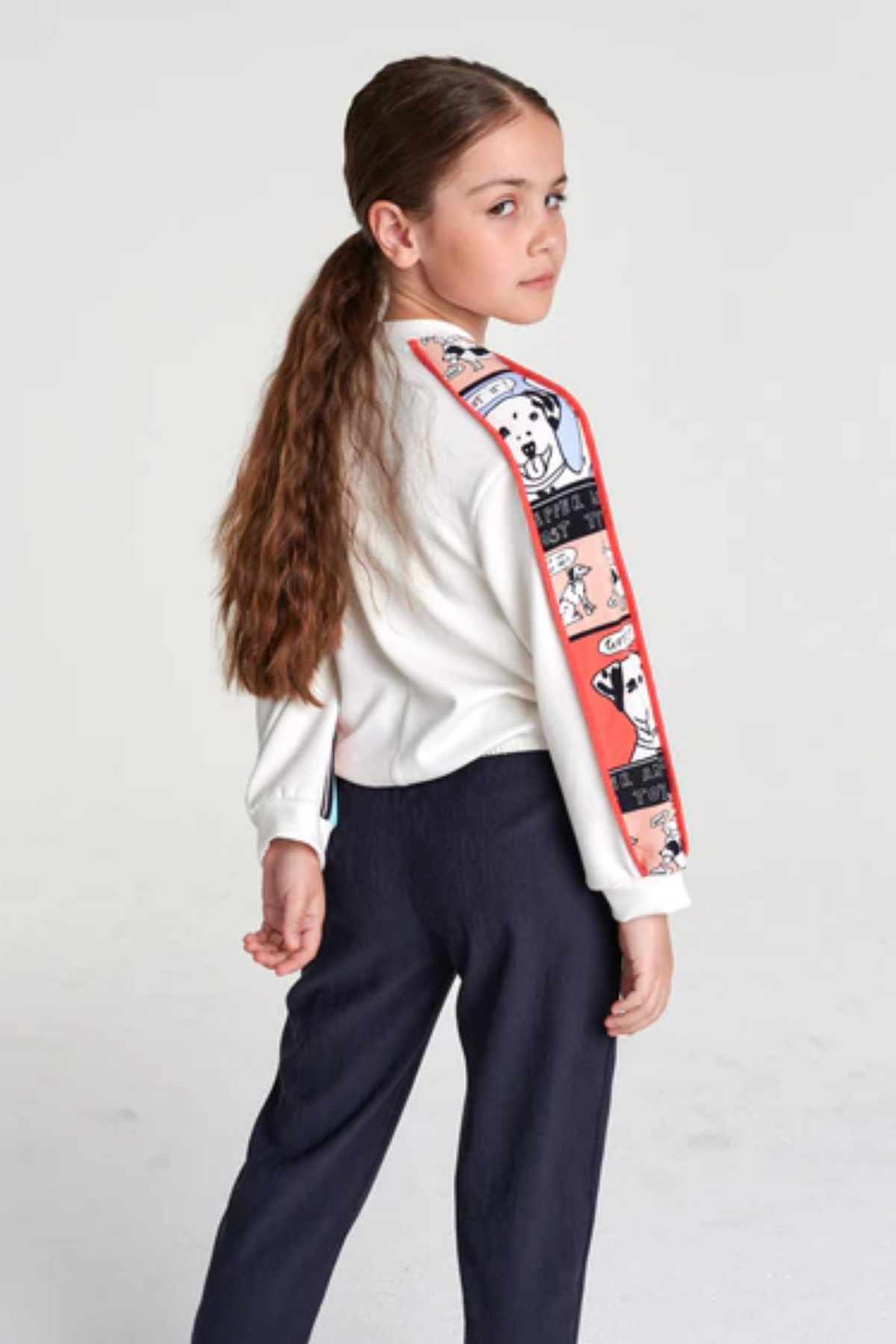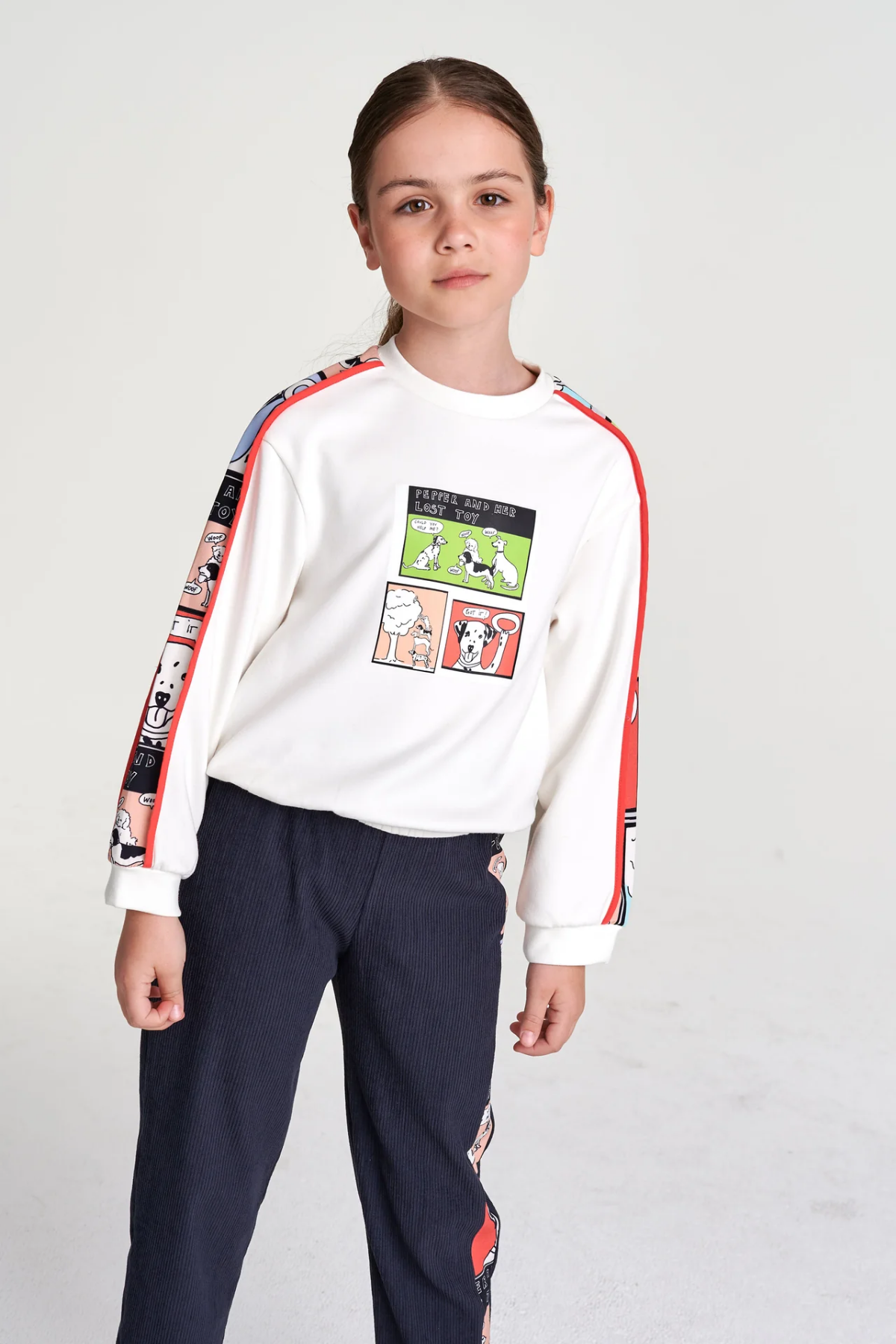 Örme sweatshirt'ün kollarında dalmaçya desenli detayları vardır. Eşofman altı ise siyah örme kumaştan imal edilmiştir. BLL0047 - PTL0025 Dalmaçya Desenli Eşofman Takım